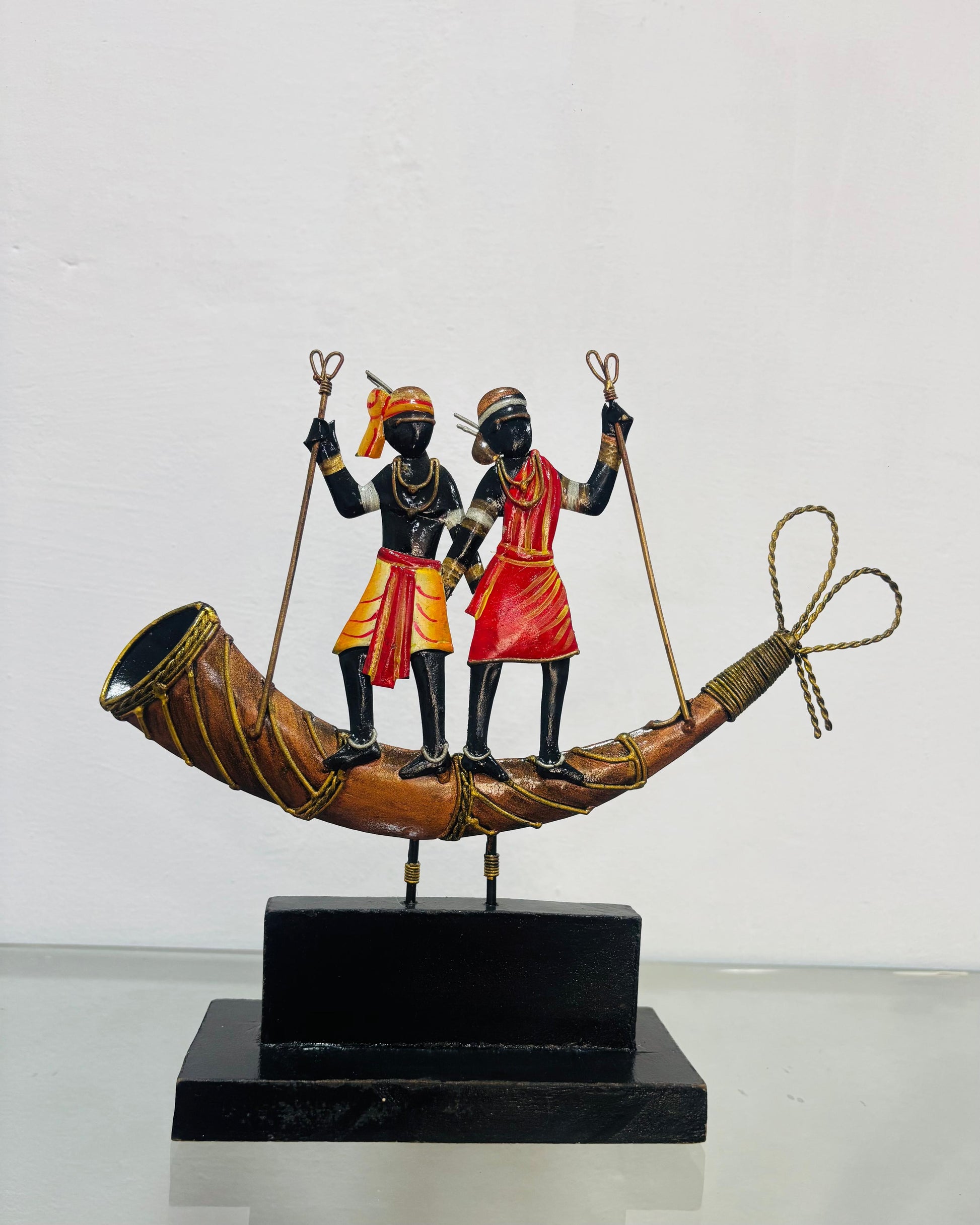 Bastar Tribal Boat Dance Metal Art Showpiece