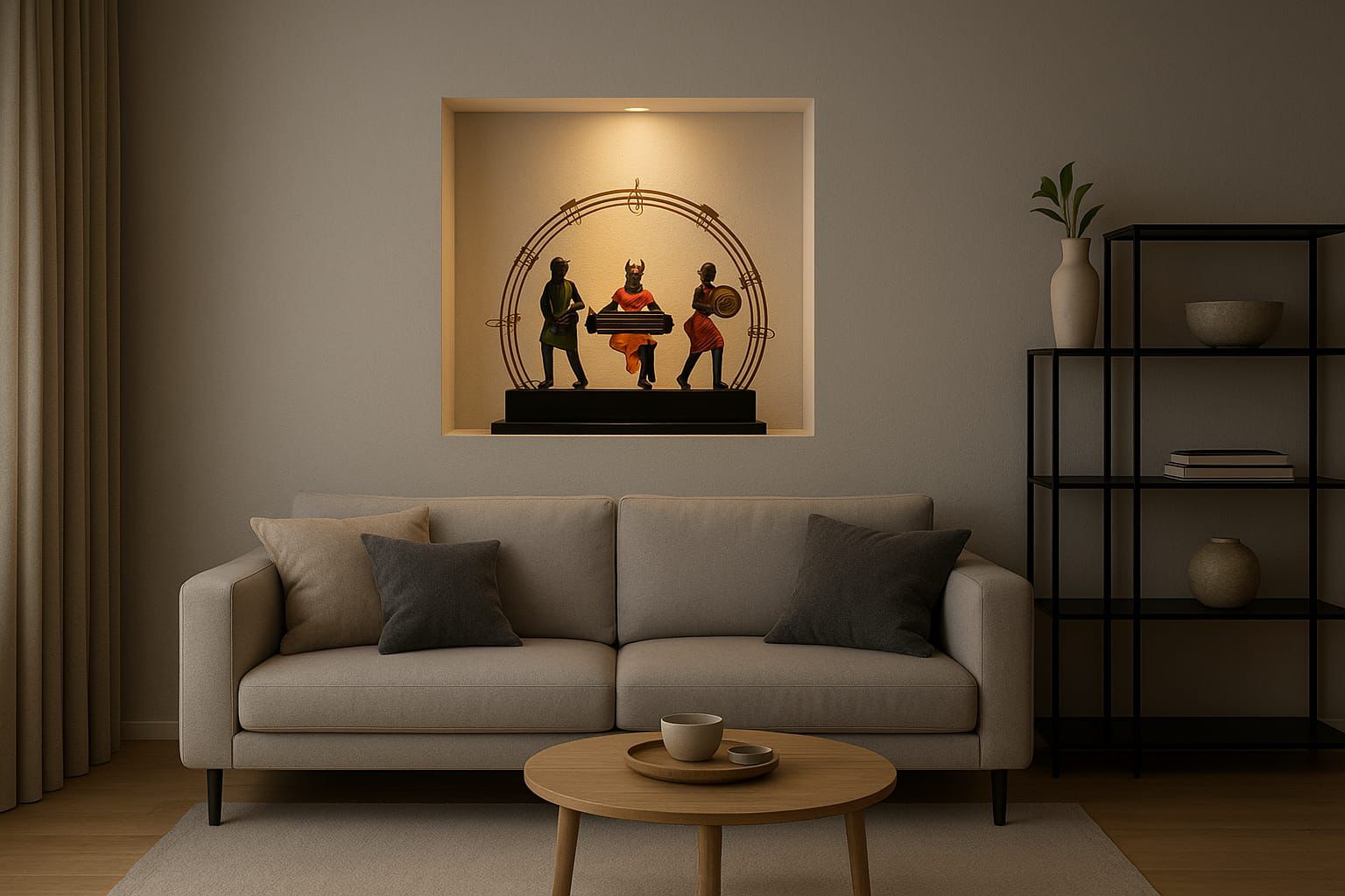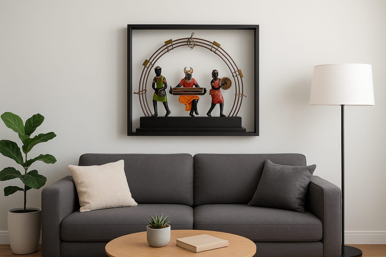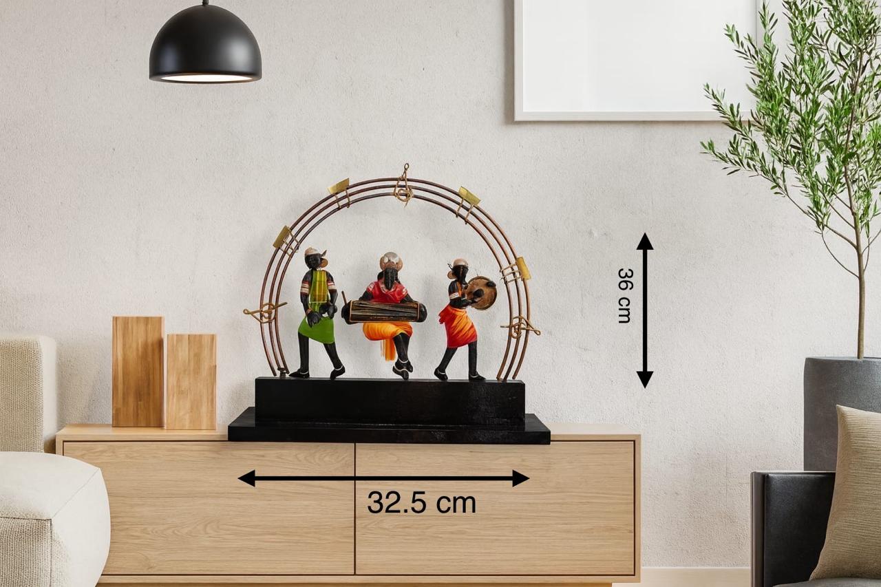 Celebrate the rhythm, culture, and festive spirit of tribal India with this stunning Bastar Tribal Musician Metal Art Showpiece, handcrafted by skilled artisans from the tribal region of Bastar, Chhattisgarh. This exquisite décor piece features three traditional tribal musicians playing folk instruments, symbolizing joy, unity, and the musical heritage of rural India.